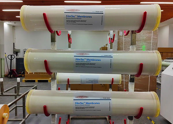 RO反滲透膜是一種根據壓差作用實現溶液中物質分離的物理技術。在RO反滲透膜的一側施加壓力,驅動原水進入到膜通道中,經過RO反滲透膜納米級的膜孔徑過濾,可以充分去除水中含有的各種有機物、無機物、酸、堿、離子等,出水水質穩定且質量高